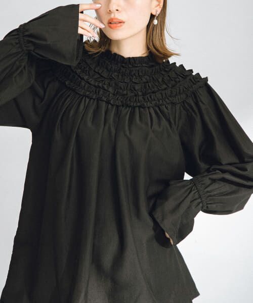トレンド感満載のフリルディテールが目を惹くブラウス