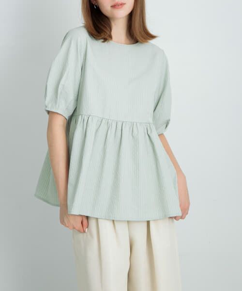 シワになりにくい表面感のあるサッカー素材を使用したブラウス。