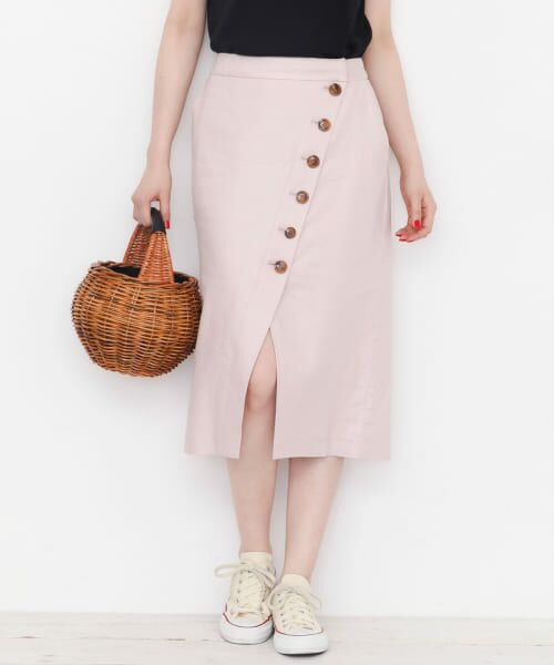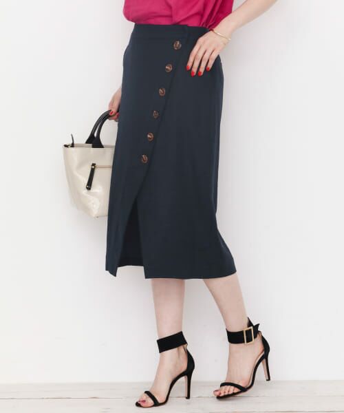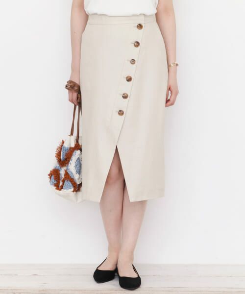 ナチュラルなリネンを垢抜けさせるシャープなシルエットが女らしいラップ風スカート。トレンドの釦アップ仕様とリネンをブレンドした涼しげな素材がポイント。ペンシルシルエットもストレッチが効いている為穿きやすくなっています。▼お気に入り登録のおすすめ▼お気に入り登録商品は、マイページにて現在の価格情報や在庫状況の確認が可能です。お買い物リストの管理に是非ご利用下さい。