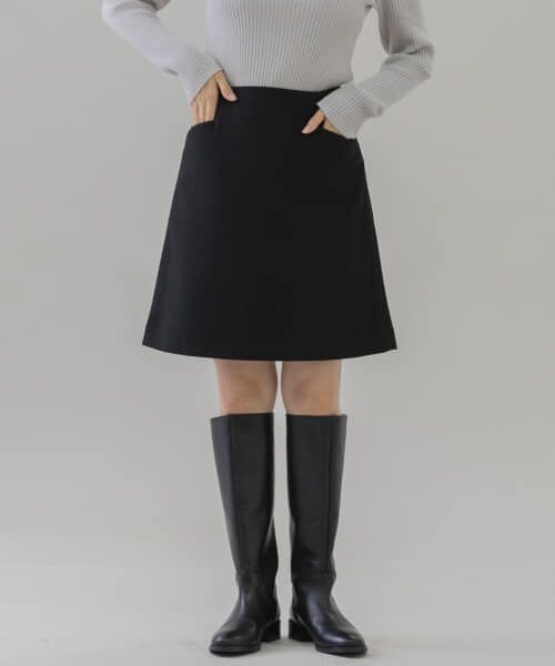 短すぎない丈感なので大人っぽく着ることができ、台形のシルエットはウエスト回りをすっきり見せてくれます◎