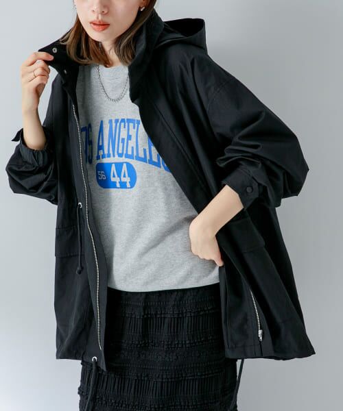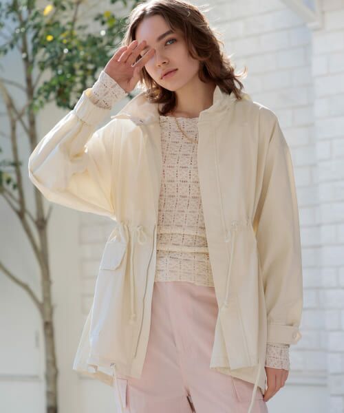 ヒップが隠れる着丈やオーバーなサイズ感、袖口のゴムでラフに着られ、ウエストや裾のドローコードでシルエット変化も楽しめます。