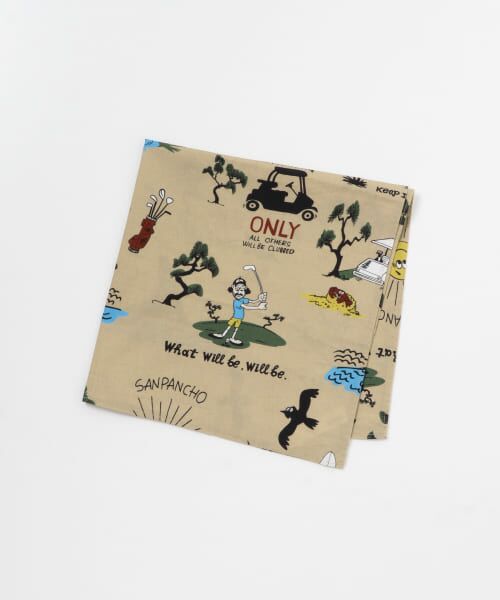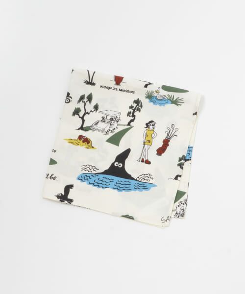 OOPS×RYUAMBEコラボアロハシャツと同素材のハンカチを作成。ゴルフ場でも普段使いでも使いやすい大き目なサイズ感です。