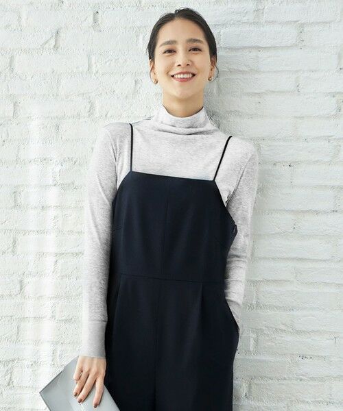 レーヤードスタイルに欠かせないボトルネックカットソー■デザインシンプルなボトルネックのカットソーです。首周りにドレープが出るので、シンプルながらもオシャレ感のあるデザインです。肩や腕の動きがスムーズなストレスの少ない着心地もポイントです。上にアウターやニットを重ね、襟元からボトルネックをちらりと見せるレイヤードスタイルがおすすめです。■素材002(オフ)、030(モカ)、005(ブラック)カラーは肌触りが良く滑らかな素材で、シルクのような光沢感とソフトなしなやかさがあります。弱めのストレッチ糸を全体に入れることにより、ソフトなストレッチ感と程よいフィット感があり快適な着心地です。グレー(ラメ)(703)カラーはラメが全体に贅沢に編み込まれていますが、光り過ぎない落ち着いた輝きのラメを使用しているので上品な印象です。極細ラメなので肌当たりが良く、しなやかな風合いに仕上げています。