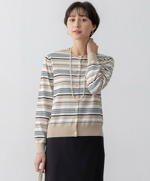 マルチボーダーがコーディネートにメリハリをつけるカーディガン