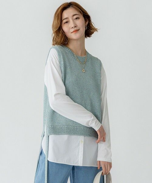 インナーとの素材のコントラストを楽しむニットベスト