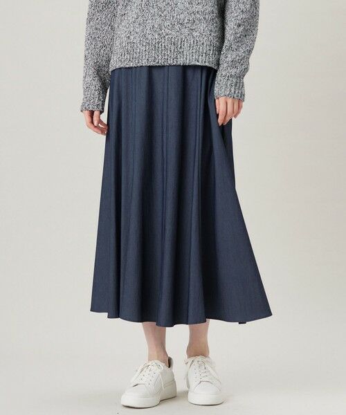 程よくエレガントなフレアシルエットのスカート■デザイン腰周りはすっきりとさせ、裾に向けて程よいボリュームのフレアを出したスカートです。シンプルながらもフレアが女性らしく、華やかな印象です。ウエストはゴム入りなので着心地の良さもポイントです。■素材セルロース系再生繊維ならではのしなやかなドレープ感とナイロンの適度なハリコシ感を兼ね備えた、繊細なカラー表現が可能なツイル素材です。程よいストレッチ性と柔らかなタッチ、適度な落ち感で着心地の良い素材です。デニム調のシャンブレーカラー(075)もカジュアルになりすぎない、キレイめな表情に仕上がっています。■同素材アイテムブラウス(BLW7GM0208)ワイドパンツ(PRW7GM0208)