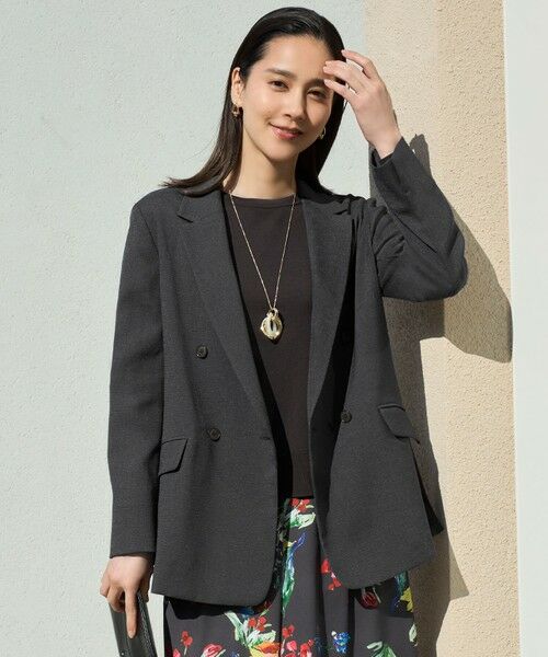 軽く羽織るだけで今年らしさを感じられるテーラードジャケット■デザインかっちりとしすぎないエフォートレスさを感じられるダブルブレストのテーラードジャケットです。ウエストを絞りすぎずにボクシーなシルエットで、カーディガンのように軽く羽織る感覚で着て頂くことができる、今年らしいバランスに仕上げました。ワンピースやスカート、パンツの上に羽織るだけで今年らしさを感じられる、ややリラックスした大人のジャケットスタイルにおすすめの1着です。同素材のパンツやビスチェと合わせてセットアップでも着て頂けます。■素材麻見えを意識して作られた合成繊維素材です。スラブ調の糸を使用して表面に凹凸感を出し、よりナチュラルな天然素材の表情を実現しています。ストレッチ入りで着心地が良く、さらりとしたタッチと軽さ、通気性が特徴です。シワが目立ちにくく、キレイ見えし、接触冷感機能付きなのもポイントです。■同素材アイテムワイドストレートパンツ(PRW7GM0302)キュロットパンツ(PRW7GM0303)ビスチェ(BLW7GM0302)