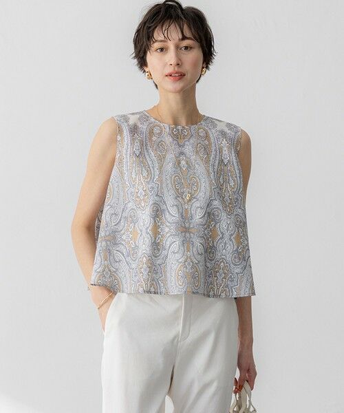 存在感のあるペイズリープリントが印象的なブラウス。裾に向かって分量感を出すことで、シンプルながらも女性らしさのあるシルエットに仕上げました。気になるお腹まわりもさりげなくカバーしてくれます。背中にはグログラン付きのファスナーがついており、デザインポイントになるだけでなく、着脱も楽で、きれいに着こなせます。パンツやIラインスカートと相性がよく、オンでもオフでも幅広く活躍します。カラーはシックで華やかなブラックプリント(#505)と優しい色合いのベージュプリント(#533)の2色展開です。