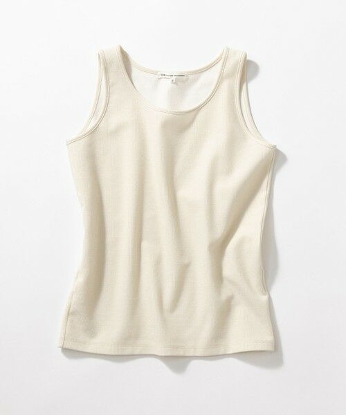 暑い時季でもトレンドのラメを取り入れられるタンクトップ。すっきりとしたリブ柄を体のラインを拾いにくい針抜き組織で編みあげました。ラメのチクチクを感じさせないよう、特殊な編みで表側のみに出るように仕上げているため、着心地の良さも叶えます。一枚でも、シャツのインナーにも合わせられるよう、ほど良い襟開きのデザインに仕上げました。アクセサリーと合わせていつもより華やかなコーディネートが楽しめます。カラーは、明るい印象のアイボリー(#002)、抜け感のあるライトグレー(#003)の2色展開です。