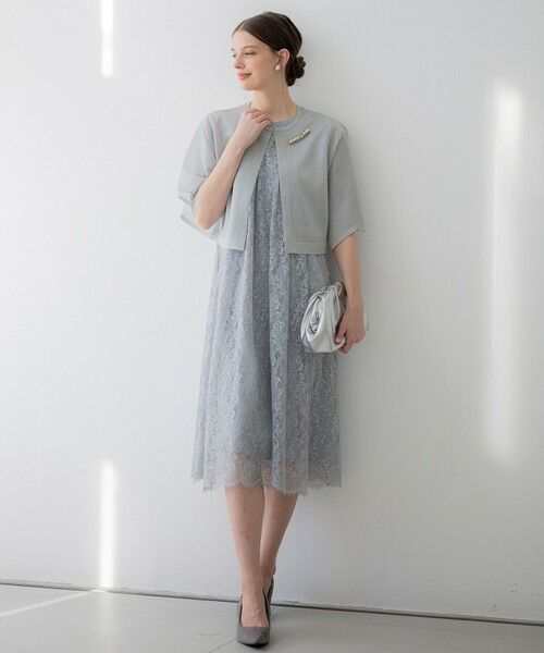 フローラルモチーフの繊細なレースを贅沢に全面に使用した総レースドレス。シルエットはシンプルなAラインで、レースの素材感をいかした華やかなデザインです。落ち着いたニュアンスのあるグレイッシュブルー(#073)、深みを感じるスレートグレー(#004)、清楚な印象のネイビー(#075)の3色展開です。