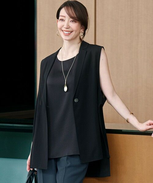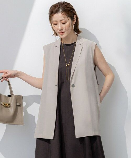 さらっと羽織るだけでコーデにこなれ感をプラスするジレ。軽やかな素材で、夏の大人カジュアルスタイルには欠かせないレイヤードアイテム。シングルブレストのフロントと細めのラペル(ジャケットの下襟の折り返し部分)がシャープな印象で程よいきちんと感を演出。腰回りをキレイにカバーしてくれるレングスも嬉しいポイントです。カラーは、柔らかな印象のベージュ(#033)、落ち着きがあり肌馴染みのいいカーキ(#054)、モードな雰囲気が漂うブラック(#005)の3色展開です。