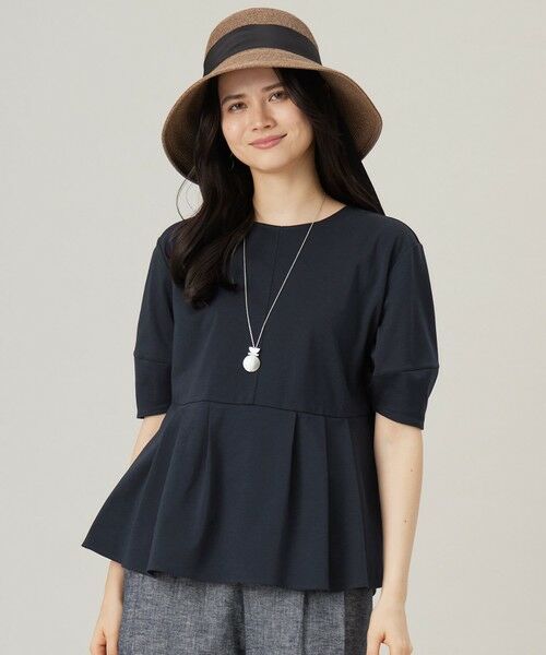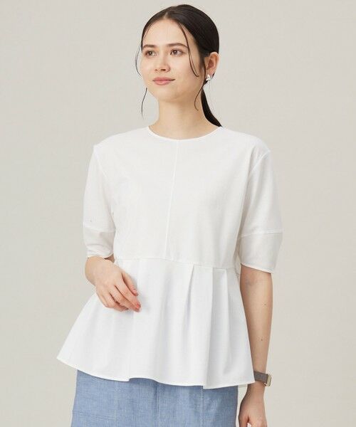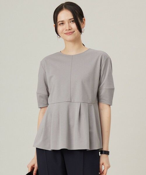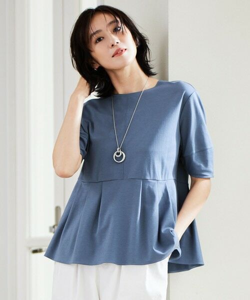 1枚でサマになる上品なペプラムカットソー■デザイン控えめなフレアが上品なペプラムシルエットのカットソーです。袖の程よいフォルム感も相まって、1枚でも華やかに着て頂けます。ショート丈のカーディガンと合わせたスタイリングもおすすめです。■素材ハリ感とドレープ性を持つストレッチ性のある素材です。綿特有の強い光沢と接触冷感、UVカット、吸水速乾、抗菌防臭など暑い時期にも着て頂きやすい機能性を持つ素材です。特殊加工により肌離れがよく、乾きやすいように仕上げております。■同素材アイテムスリーブディティールカットソー(KKW7GM0531)フレアディティールカットソー(KKW7GM0533)