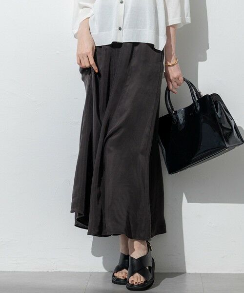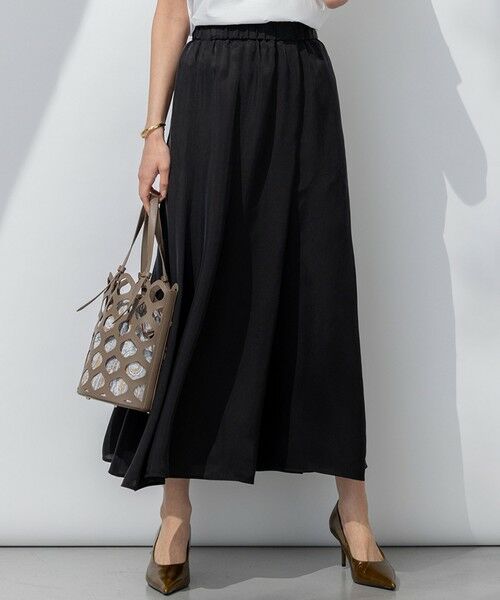 落ち感のある素材で、スッキリとしたラインをつくる上品なギャザースカート