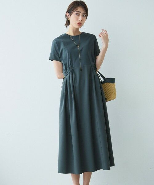 ウエスト位置でカットソーとタフタを切り替えたコンビネーションデザインワンピース。スカート部分は軽やかなタフタの素材を生かし、サイドにタックフリルをあしらい程よい甘さをプラス。体のラインを拾わない着心地よいリラクシーなデザインです。撥水加工により雨の日も気負いなく取り入れやすいアイテムです。暑い時期にも爽やかな洒落感をくれるダークグリーン(#065)、ナチュラルなエレガントさを演出するキャメル(#033)、合わせやすいシックなブラック(#005)の3色展開です。