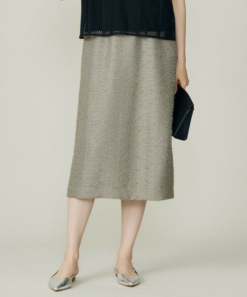 毛足感のあるカットジャカード素材が華やかなスカート■デザインシンプルなシルエットながら素材を活かした華やかな印象のIラインスカートです。シャツなどキレイめなアイテムだけでなく、Tシャツなどのカジュアルなアイテムを少し華やかに、大人の女性らしくこなすスタイリングもおすすめです。■素材フェザーのような毛足感のある華やかなカットジャカード素材です。透明の細いフィルム糸がより上品な光沢感を与えます。織り上がった生地の模様がない部分の長い糸を切り取ることで、動きのあるフリンジに仕上がり、表情豊かな素材感が特徴です。