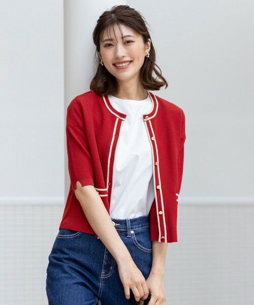 #anySiS #エニシス #エニィシス #レディース #カーディガン #バイカラー #上品 #半袖 #大人レディ #フェミニン #レディスタイル #カジュアル #カジュアルスタイル #カジュアルコーデ #休日コーデ #UVカット #機能性 #オフィスコーデ #仕事着 #洗える #ウォッシャブル