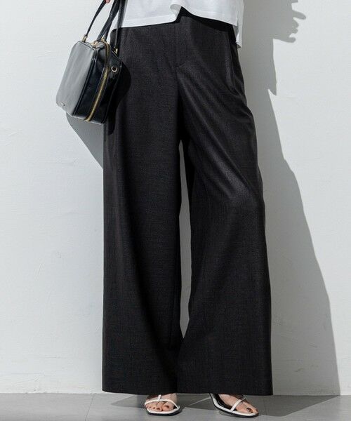 清涼感のあるドライタッチな素材を使用した、涼し気なワイドパンツ。サイドによせたタックがアクセントになってマニッシュな印象に。ウエストの後ろ部分はゴム仕様のため穿き心地の良い仕上がりに。シンプルなデザインだからこそ、様々なトップスとの相性も良く着回しのきくアイテムです。同素材のジレとのセットアップでの着用もしていただけます。ご自宅での手洗い可能なイージーケアなのも嬉しいポイント。 カラーは、優しい色合いのベージュ(#033)、シックなブラック(#005)の2色展開です。
