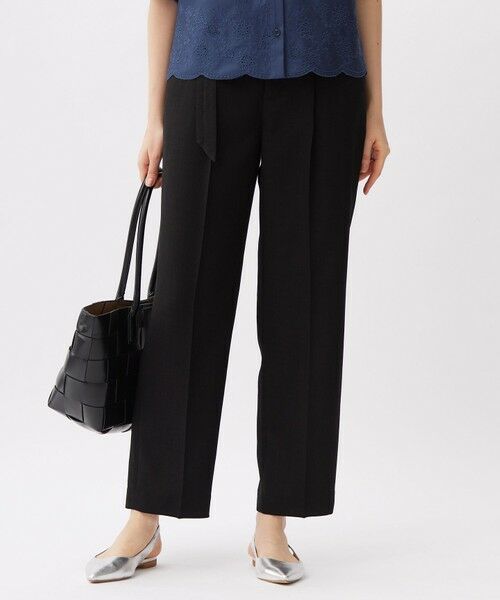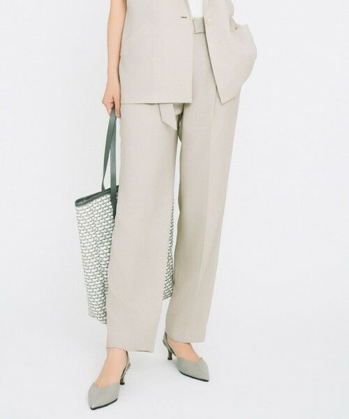 清涼感のある、ゆるめのテーパードシルエットパンツ■デザイン1タックのゆるめのテーパードシルエットパンツです。ゆるめのテーパードなので、体のラインを拾いにくいのがポイントです。付属の共布ベルトはDカンとステッチが入っているので、少しカジュアルなコーディネートにも合わせて頂けるようにしています。同素材のブラウス(BLW7GA0005)やジャケット(JKW7GA0005)と合わせてセットアップとして着て頂くのもおすすめです。■素材ナチュラルな濃淡色調の清涼感のある麻調素材です。トリアセテートを使用した適度なシャリ感のある素材で、タンブラー加工を施すことでナチュラルな風合いに仕上げています。シワになりにくく、吸放湿性に優れ、UVカット、接触冷感と暑くなる時期に嬉しい機能性のある素材です。■同素材アイテムブラウス(BLW7GA0005)ジャケット(JKW7GA0005)