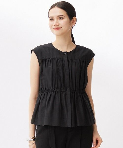 ギャザーとフレアデザインが女性らしいフレンチスリーブブラウス■デザインヨークとウエストにギャザーを寄せたブラウスです。お顔周りは丸首ですっきりとさせ、袖は二の腕周りを程よくカバーしてくれるフレンチスリーブになっています。第1ボタン以外は比翼開きにすることで、ギャザー部分が綺麗に見えるように仕上げています。ウエストから少しフレアするデザインなのでスタイルアップ見えが叶います。■素材シルク混特有の光沢感ときしみ感があり、上品な透け感のある素材です。細番手原料のため軽やかでしなやかな風合いで、発色の良さもポイントです。■同素材アイテムスモッキング刺繍ブラウス(BLW7GA0002)