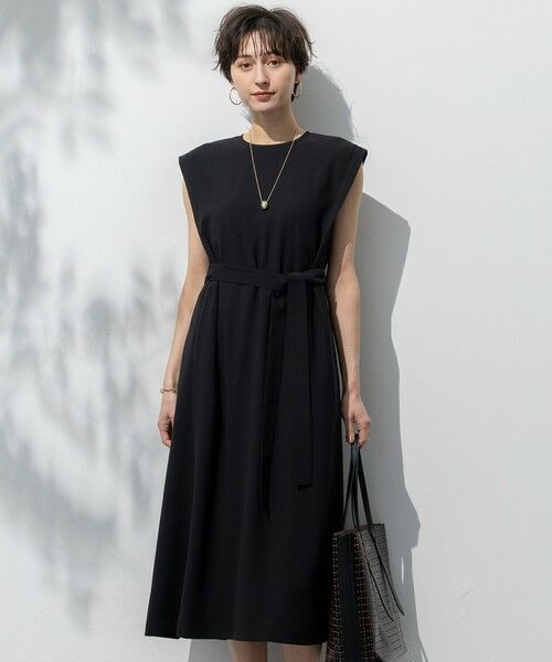 裾に向かってゆるやかに切り替え広がるフレアラインワンピース。シワになりにくいジョーゼット素材で、裾にむかって広がる美しいシルエットを保ちます。今年は肩先をやや長くすることで、気になる袖感をさらに着やすくアップデート。カジュアルにもきれいめにも着回しやすいデザインです。付属のベルトを軽く結びウエストマークした着こなしも楽しめます。同素材のジャケットやジップアップブルゾンとセットアップであわせるスタイルもおすすめです。カラーは、爽やかな青味を感じるダークグリーン(#065)、シックな雰囲気のあるブラック(#005)と、清楚な印象を引き立てる深みのあるネイビー(#075)の3色展開です。
