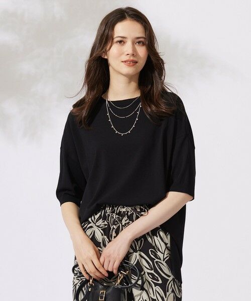 接触冷感・UVカット機能付き!人気のニットに新色が追加!■デザイン美しいドレープ感のあるキレイめなTシャツライクニットです。程よくゆとりのあるシルエットですが、落ち感のある素材なのでラフな印象になりすぎないデザイン。ジャケットやニットを羽織ってもストレスを感じにくく、ブラウスのようにきちんと感もあるのでインナーとしても最適です。着丈に前後差があるのでパンツスタイルにも合わせやすく、シーンを問わず活躍する汎用性の高いトップスです。■素材レーヨンとストレッチポリエステルを撚糸した糸を使用しております。ストレッチ性があるので動きやすく、身体に馴染みやすいのでストレスフリーな着心地です。撚りを強くかけているので、表面がクレープ状になっており、ドライタッチなシャリ感と清涼感がありながら、エレガントなドレープ性を合わせ持った素材です。接触冷感、UVカット機能付きです。■同アイテムの他のカラープルオーバー ニット(KRW7CM0452)
