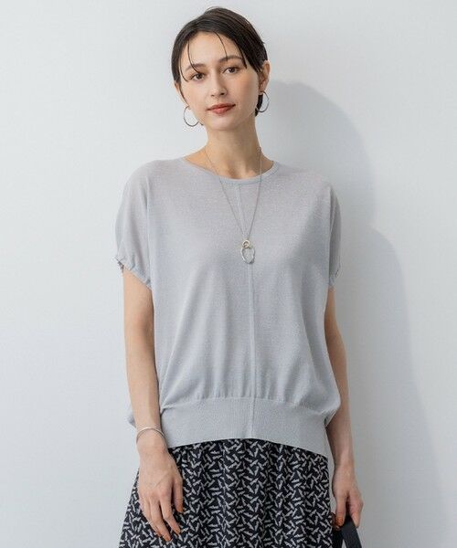 袖口のふんわりとしたシルエットとゆったりとした身幅が、大人の余裕を感じさせるプルオーバーニット。気になる体のラインをさり気なくカバーしながら、きれいめスカートと合わせた上品なスタイリングや、カジュアルなパンツと合わせた抜け感のある着こなしまで、幅広い夏のスタイルに活躍します。一枚で着映えするのはもちろん、ジャケットや羽織りのインナーとしても、華やかさをプラスしてくれるアイテムです。カラーは、ゴージャスな雰囲気のゴールド(#090)、抜け感のあるライトグレー(#003)、明るい雰囲気のシルバー(#091)の3色展開。