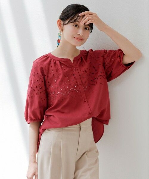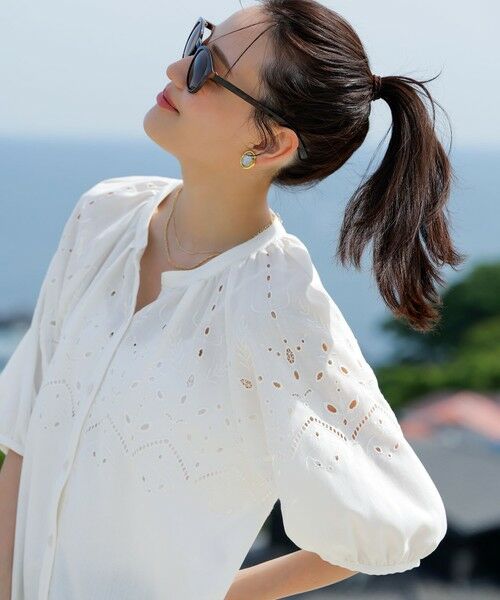 【洗える】カットワークエンブロイダリー ブラウス