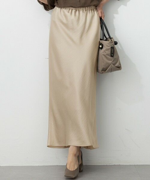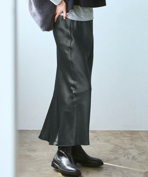 表情感のあるサテン素材で、スタイリングを格上げしてくれるナロースカート