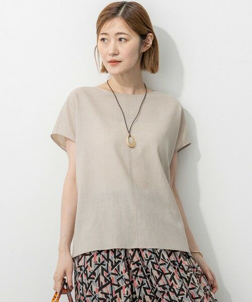 リネンライクな表情が魅力のシンプルなブラウス。フロントに入ったステッチがさりげないアクセントになり、上品さを引き立てます。バックスタイルにはグログランテープ付きのファスナーを施し、後ろ姿も抜かりなくおしゃれを演出。スカートにもパンツにも合わせやすい丈感で、オンオフ問わず活躍します。同シリーズのパンツとセットアップで着るのもおすすめ。大人っぽく洗練された印象が叶います。カラーは、優しい色合いのベージュ(#033)、光沢感が美しいブラック(#005)の2色展開です。