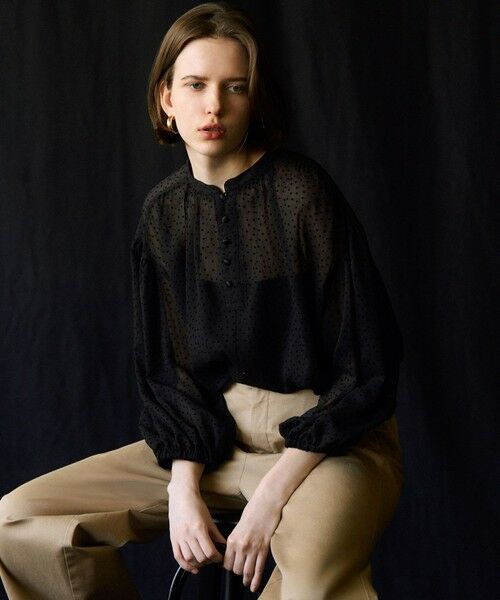 【洗える】ドットフロッキー ボリュームスリーブ ブラウス