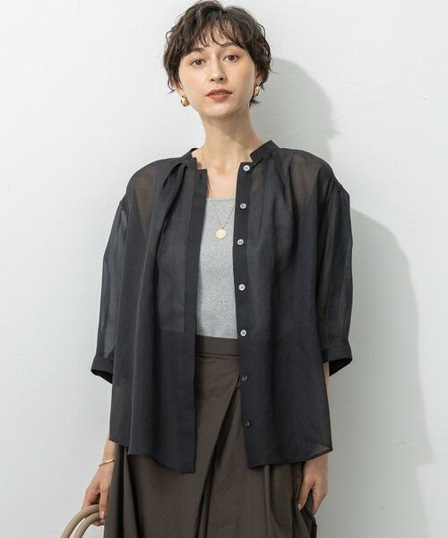フロントと袖にタックを効かせた、表情豊かなデザインブラウスです。袖に立体感を持たせつつも、シアー感のある素材が軽やかな印象を演出します。スカートにもパンツにも合わせやすい丈感で、様々なボトムスと好相性。オフィスシーンではきれいめパンツと合わせて知的な印象に、デニムと合わせてカジュアルダウンすればデイリーにも活躍します。同シリーズのスカートと組み合わせたスタイリングもおすすめ。一枚で着るだけでサマになり、コーディネートに華やかさをプラスしてくれるアイテムです。カラーは、印象引き締まるブラック(#005)、カジュアルスタイルに映えるダークブラウン(#035)、目を引く深みのあるブルー(#070)の3色展開です。