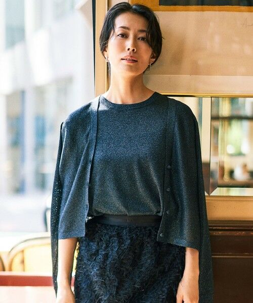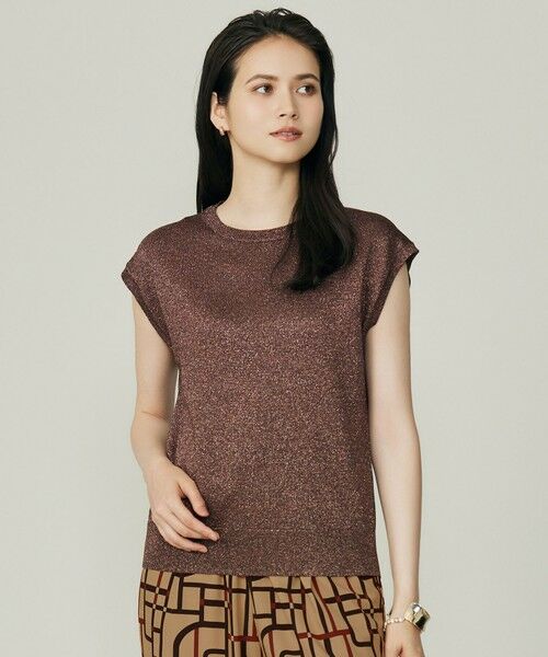 ラメの輝きが目を惹くスリーブレスニット■デザイン肩回りをややドロップさせながらすっきりと仕上げたスリーブレスニットです。程よく肌離れした着まわしやすいシルエットになっています。シンプルなデザインですが、素材のキャッチーさでスタイリングの主役になるニットです。暑い時期に1枚で着て頂けるだけでなく、ジャケットのインナーとしてもおすすめのアイテムです。■素材ミックスカラーのラメがキャッチーで華やかな印象です。しなやかでさらりとしたタッチの素材となっております。■同素材アイテムカーディガン(KRW7GW0353)