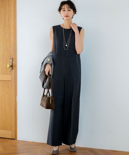 シンプルで端正な表情のオールインワン。ほどよくゆったりとしたシルエットに、ウエスト切り替え位置を高めに設定することで、1枚でも品くスタイルアップが叶います。シンプルながら計算された襟元や袖のカッティング、ヒップポケットなどのディテールに、仕立てのよさを感じさせるデザイン。背面ファスナーにはグログランテープさりげなくあしらいアクセントにしています。同素材のジレやシャツとのセットアップ着用もおすすめです。カラーは、上品でクラシカルなキャメル(#034)、こなれた印象の深みを感じるチャコール(#004)の2色展開です。