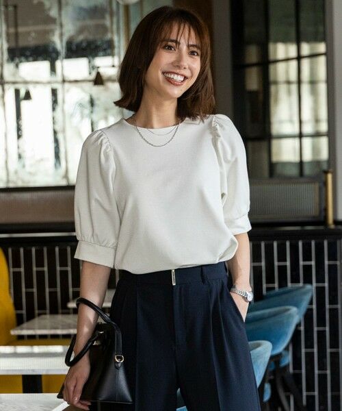 ・華やか見えするプルオーバー・後ろボタンがさりげなく可愛いアクセント・袖の程よいボリューム感で気になる二の腕もカバー