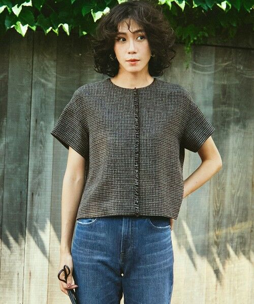 表情のあるツイードライクな質感がポイントのハーフスリーブブラウス