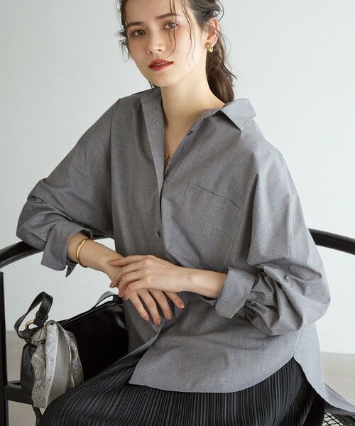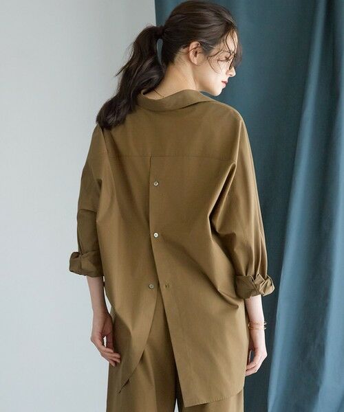 ゆるっとしたオーバーサイズシャツは、大人カジュアルなスタイリングに欠かせないアイテム。1枚でサマになるドルマンスリーブシャツで、1枚着としても羽織りとしても着回しできます。後ろのボタンを開けて深いスリットをつくると、風が通りまだまだ暑い秋口でも涼しく着ていただけます。オーバーシャツとしてボトムにプリーツのIラインスカートや、新作のデニムなどすっきりしたシルエットのものを合わせるのが今季のおすすめ。また、同素材のボトムと合わせたカジュアルセットアップとしても素敵に着用いただけます。カラーは、洒落感をプラスしてくれるこっくりとしたカーキ(#054)と、クリーンな印象のライトグレー(#003)の2色展開です。