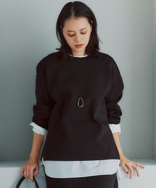 サイドのゴールドジップがポイントのカットソー。シンプルなデザインながら、ゆったりとした身幅に仕上げているため、カットソーやシャツとのレイヤードスタイルももたつかず、快適な着心地を実現します。サイドのファスナーを開けてスリットのように見せれば、インナーのシャツテールが覗き、こなれ感のある旬なスタイリングが完成します。一枚で様々な表情を楽しめる、着回し力抜群のアイテムです。カラーは、カジュアルスタイルに映えるライトグレー(#003)、モードな印象をプラスするブラック(#005)、やわらかな印象のベージュ(#033)の3色展開です。