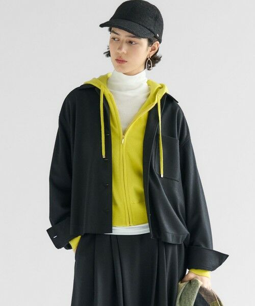 1枚着としてはもちろん、軽いアウターのように羽織りとしての着こなしもお楽しみいただけます。気温に応じてロングシーズン様々なスタイリングをして頂ける汎用性の高いアイテムになっています。カジュアルなデニムなどとも好相性ですが、同素材のスカートと合わせた上品なセットアップスタイルもおすすめです。カラーは、程よく抜け感のあるグレー(#004)、印象引き締まるブラック(#005)、ニュアンス感をプラスするカーキ(#054)の3色展開です。