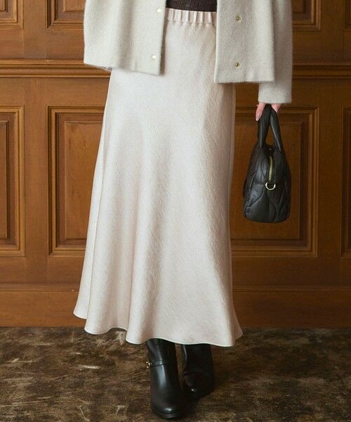 美しい艶感で洗練された印象をプラスするサテンスカート