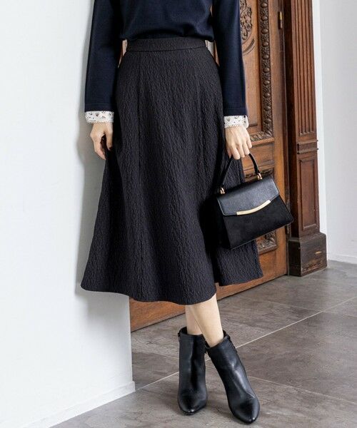 ・細かい凹凸感のある膨れジャカード素材を贅沢に使用したフレアスカート・ジャカード素材は、よく見ると小花柄になっており女性らしい印象・カラーはフォーマルなシーンでも活躍するブラックと、落ち着いた印象のブラウンをご用意
