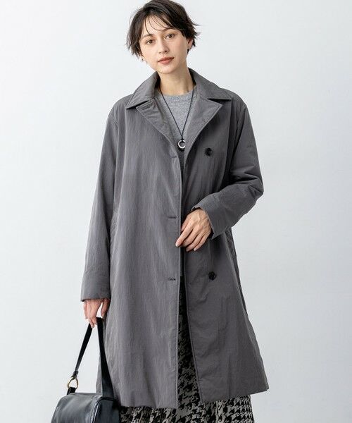 イタリア「LIMONTA」社の素材を使用したワンランク上のカジュアルアウター。サッと羽織るだけで着映えるステンカラーコートは、薄い中綿入りで軽やかな着心地です。両サイドのドット釦を開閉できるデザインで、開けて深めのスリットあきにしてシルエットの変化も楽しめます。フロントを開けてラフに着ていただいても、釦を閉めてチンフラップで襟を留めることでエレガントで大人な雰囲気にも。真冬までの軽めの防寒から、春先の防寒にも使える便利なアウターです。カラーは、落ち着きと華やぎを兼ね備えたキャメル(#034)と、クールで上品なグレー(#004)の2色展開です。