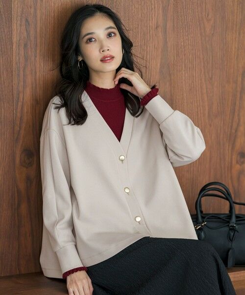 ・大きすぎず程よくゆったりとした抜け感のあるVネックカーディガン・アームホールにゆとりを持たせ、裾にかけてほんのりフレア感をプラスし、大人っぽい印象に・サラッとした肌触りで、秋口から冬まで長く活躍する一枚