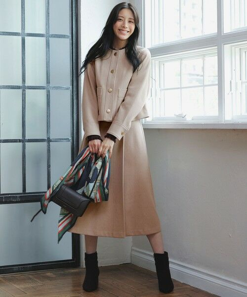 ボウタイブラウスや、ハイネックのニットとも好相性。着こなし次第で幅広いシーンに適応する、上品な一着です。