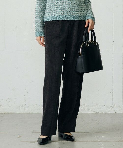 カジュアル過ぎない大人っぽい雰囲気のコーデュロイパンツ■デザインしなやかな落ち感が大人っぽいインポートコーデュロイ素材のワイドパンツです。ウエスト周りはもたつかないよう、同色の別布で切り替えたゴム入りのドロストディティールになっております。フロントはファスナー開きなので、カジュアルなディティールでありながらも美しいシルエットに仕上げました。裾に向かってすとんと落ちるシルエットと、程よいドレープ感が大人っぽいカジュアルさを感じられます。■素材ギリシャの生地メーカーIFANSI社のインポート素材で、カジュアルになり過ぎない大人な雰囲気のある素材です。一般的に綿素材の多いコーデュロイですが、ポリエステルを使用しているので、ソフトな風合いと光沢、適度な落ち感があります。太すぎない中畝のため、カジュアルになり過ぎずに着て頂けます。■同素材アイテムスカート(SKW7GW0514)