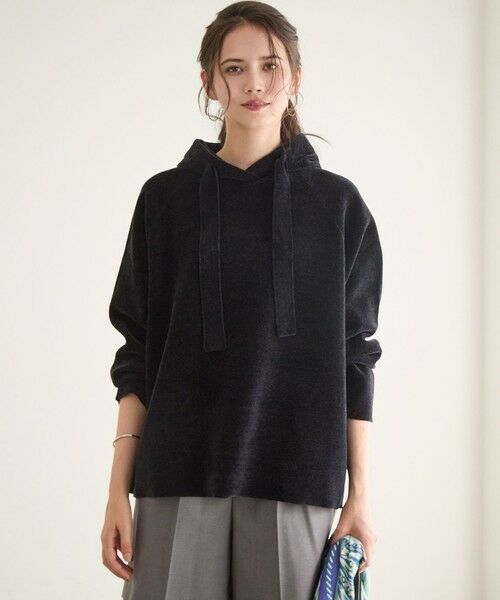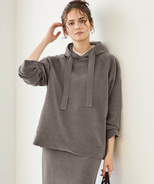 上品な光沢と柔らかな肌触りが特徴の素材を使用し、存在感がありながらも軽やかな着心地を実現。大人のカジュアルスタイルをワンランクアップさせるアイテムとして活躍します。 ゆったりとしたオフボディのシルエットは、体型を拾いにくく、リラックス感のある着心地を叶えます。フードと、ワイドなドロストリングテープがデザインのアクセントとなり、カジュアルな中にも洗練された印象を与えます。同素材のスカートとセットアップで着用すれば、より一層洗練された印象に。休日のリラックススタイルから、ちょっとしたお出かけまで、様々なシーンで活躍します。カラーは、着回し力抜群のブラック(#005)と、温かみがあり肌なじみの良いブラウン(#030)の2色展開です。