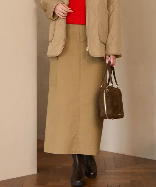冬のカジュアルスタイルに洗練されたアクセントを添える、大人のためのカーゴスカートです。ワークディテールを取り入れながらも、すっきりとしたIラインシルエットに仕上げることで、カジュアルすぎない上品な印象を演出します。オーバーサイズシルエットのトップスと合わせれば、トレンド感のある着こなしが完成。へアリーなニットやローゲージニットと着合わせることで、素材のコントラストが生まれ、こなれた雰囲気を楽しめます。コットン素材のため、オールシーズン活躍する汎用性の高さも魅力です。普段使いはもちろん、休日のお出かけや少しきれいめにまとめたいシーンにもおすすめです。 カラーは、どんなトップスにも合わせやすい万能なベージュ系(#033)と、ミリタリーテイストを程よく取り入れつつ、落ち着いた大人の雰囲気を醸し出すシックなカーキ系(#054)の2色展開です。