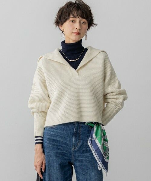 【洗える】ウールカシミヤチャンキー クロップド スキッパーニット