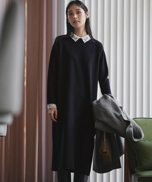 レース使いが清楚な華やぎを添える、ニットワンピース