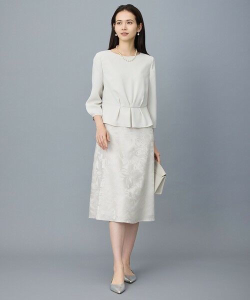 素材感と繊細な花柄が上品なワンピース■デザイン無地のサテンとオパール加工で表現したシルキーな素材を使用した、大人っぽい高級感のあるセットアップ風ワンピースです。ウエストにメリハリがありながら程よいゆとりもあるので、すっきり見えながら快適な着心地なのも嬉しいポイントです。お袖は程よい丈感の8分袖で、女性らしい抜け感を演出してくれます。ジャケットやカーディガンにも合わせやすく、大人のONシーンにも最適な1枚です。■素材大胆な花柄をオパールの透け感で表現した、さりげない陰影感が特徴のプリントです。適度な光沢感とハリ感を兼ね備えたサテン素材をオパール加工することで、透け感と凹凸感を表現した素材です。無地素材には、膨らみ感と上品な風合いのあるツイル素材を使用しています。■同素材アイテムブラウス(BLW7LS0007)スカート(SKW7LS0007)