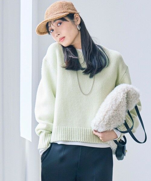 ふっくらとした天竺編みが魅力のプルオーバーニット。短すぎないコンパクトな丈感は、スカートにもパンツにも合わせやすく、着回し力の高い一枚。シンプルなシルエットながら、袖の絶妙なパフと全体のボリューム感にこだわり、女性らしい優しさと上品さを演出します。春らしさを先取りできるパステルなカラー展開で、顔周りを明るく華やかに彩ります。カラーは、上品な定番カラーのアイボリー(#002)、着回し力抜群のニュアンスカラーのライトグレー(#003)、優しい印象のパステルピンク(#012)、トレンド感のある大人のスモーキーグリーン(#063)、爽やかで清涼感のある春らしいスカイブルー(#072)、明るくポジティブな印象を与えるライトイエロー(#042)の6色展開です。